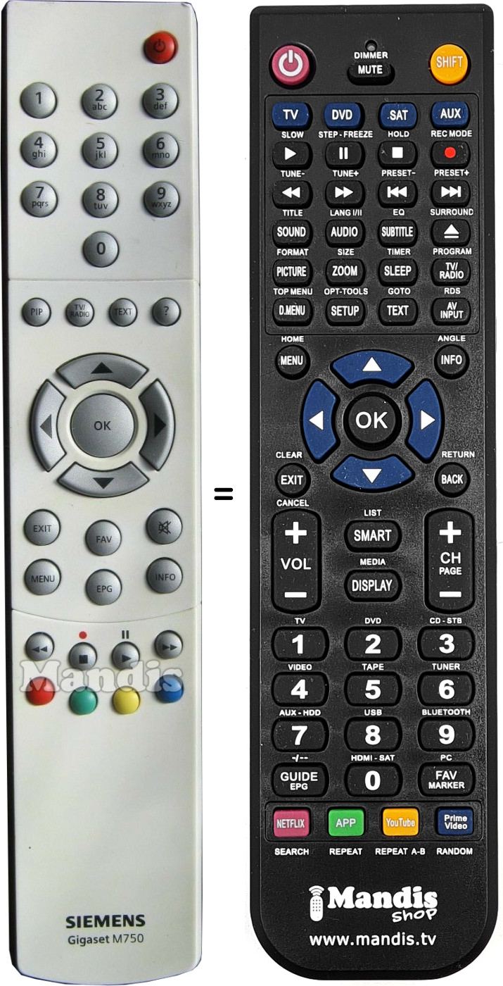 Comando à distância que substitui o original GIGASET (M750) em todas as suas funções.