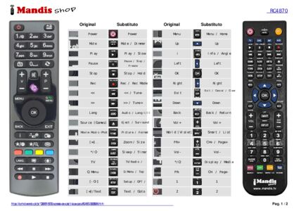 Um documento está incluso para ajudá-lo a usar o novo controle remoto facilmente, mostrando a correspondência dos botões.