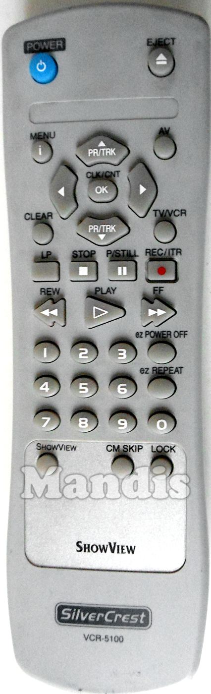 Comando à distância original VCR5100 da marca Silvercrest. Trata-se de um modelo original de comando à distância.
