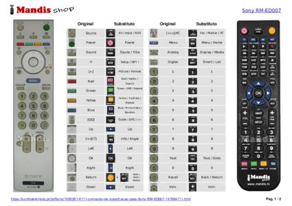 Um documento está incluso para ajudá-lo a usar o novo controle remoto facilmente, mostrando a correspondência dos botões.