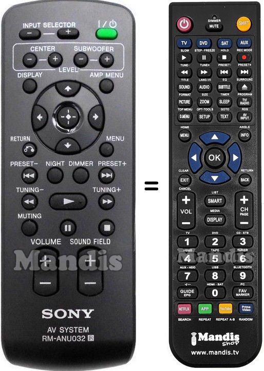 Início > Marcas > Comandos à Distância Sony > Controle remoto para Sony RM-ANU 032