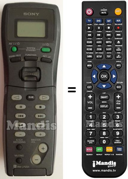 Este comando substitui completamente o seu RM LP205 e oferece todas as funções do original.