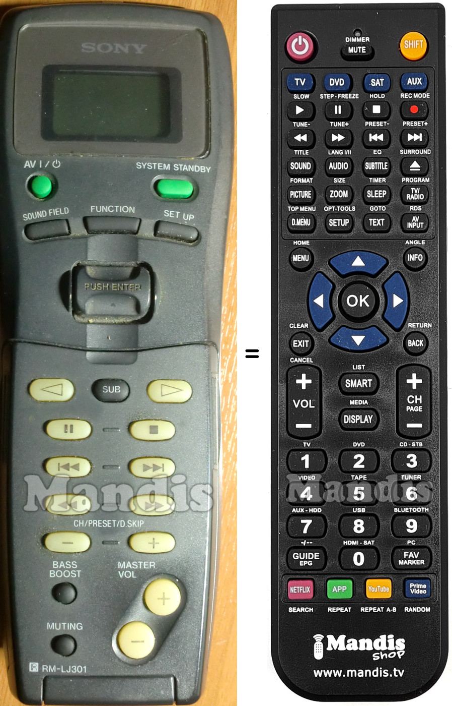 Este comando substitui completamente o seu RM-LJ301 (147572611) e oferece todas as funções do original.