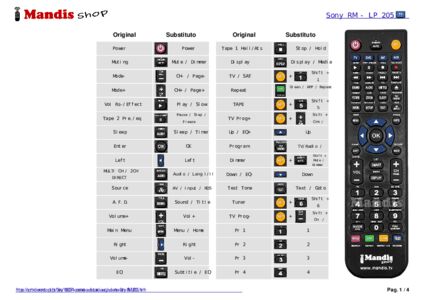 Abaixo, mostraremos a correspondência entre cada botão no controle remoto original e o botão que executa a mesma função no controle remoto de substituição. Em alguns casos, pode ser necessário pressionar a tecla SHIFT antes de pressionar outro botão para realizar determinadas ações. Essas funções adicionais geralmente não são amplamente utilizadas e são incluídas para facilitar o entendimento do controle remoto de substituição, ou porque o controle remoto original tem mais botões do que seu equivalente.