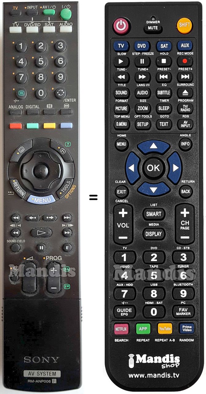 Este controle remoto substitui a maioria das funções do seu RM-ANP006. Não é um controle remoto universal, mas sim uma cópia com a maioria dos botões e funções do seu original.