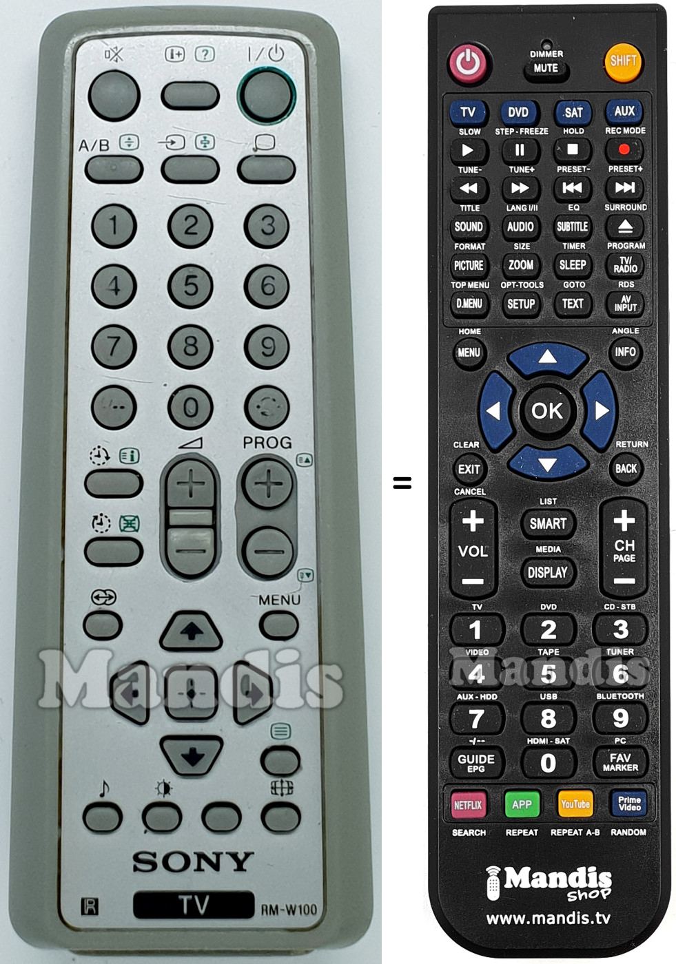 Este comando substitui completamente o seu RM-W100 (147800711) e oferece todas as funções do original.