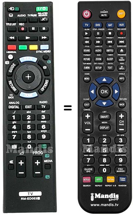 Este comando substitui completamente o seu RM-ED053 (149199511) e oferece todas as funções do original.