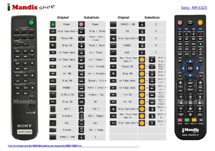 Este comando substitui completamente o seu RM-S325 (147365531) e oferece todas as funções do original.