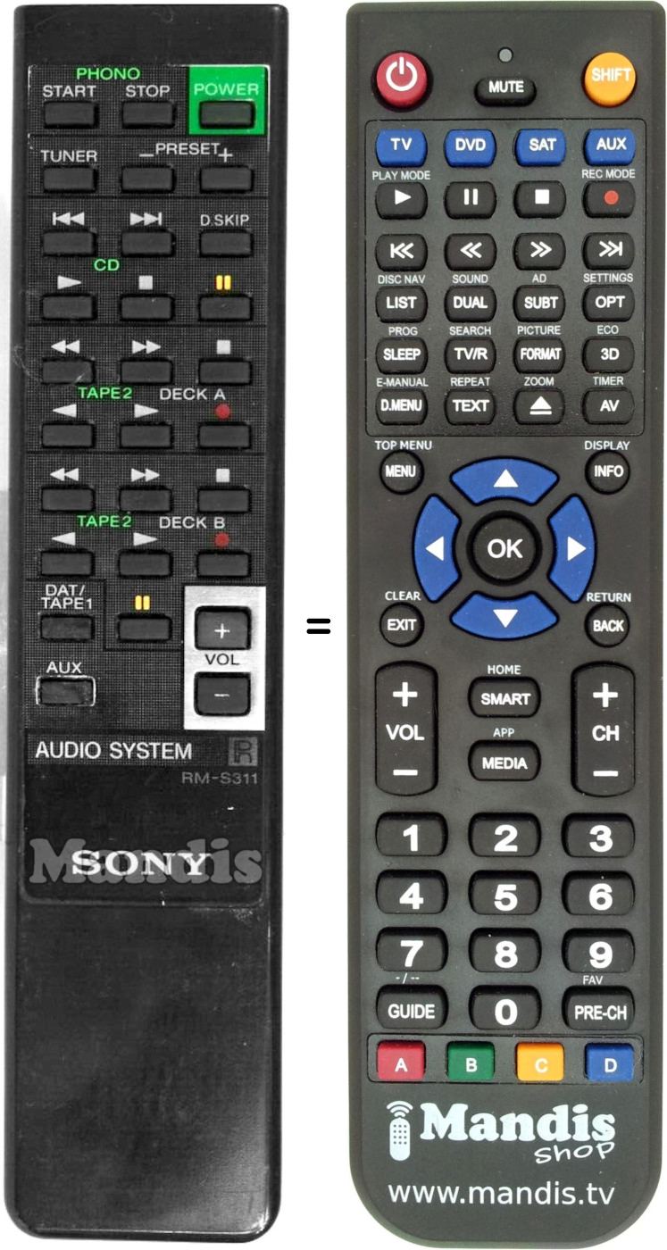 Este controle remoto substitui a maioria das funções do seu RM-S311 (169313111). Não é um controle remoto universal, mas sim uma cópia com a maioria dos botões e funções do seu original.