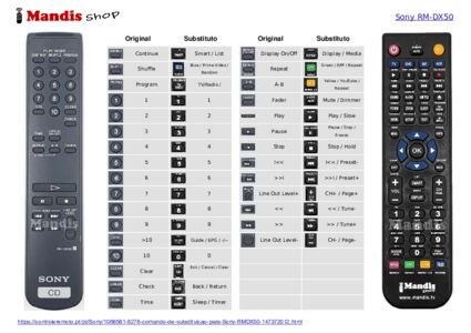 Abaixo, mostraremos a correspondência entre cada botão no controle remoto original e o botão que executa a mesma função no controle remoto de substituição. Em alguns casos, pode ser necessário pressionar a tecla SHIFT antes de pressionar outro botão para realizar determinadas ações. Essas funções adicionais geralmente não são amplamente utilizadas e são incluídas para facilitar o entendimento do controle remoto de substituição, ou porque o controle remoto original tem mais botões do que seu equivalente.