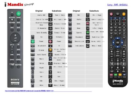 Este comando substitui completamente o seu RMT-AH500U (1-493-544-11) e oferece todas as funções do original.