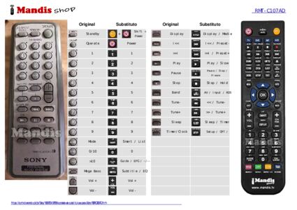 Este controle remoto substitui a maioria das funções do seu RMT-C200AD. Não é um controle remoto universal, mas sim uma cópia com a maioria dos botões e funções do seu original.