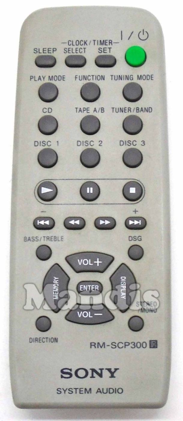 Comando à distância original RM-SCP300 (147670511) que serve para sistema hi-fi da marca Sony. Trata-se de um modelo original de comando à distância.