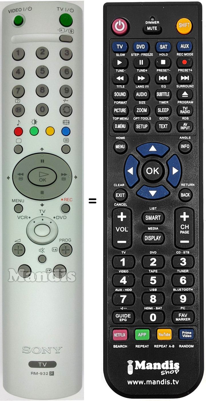Comando à distância que substitui o original RM 932 (147670212) em todas as suas funções.