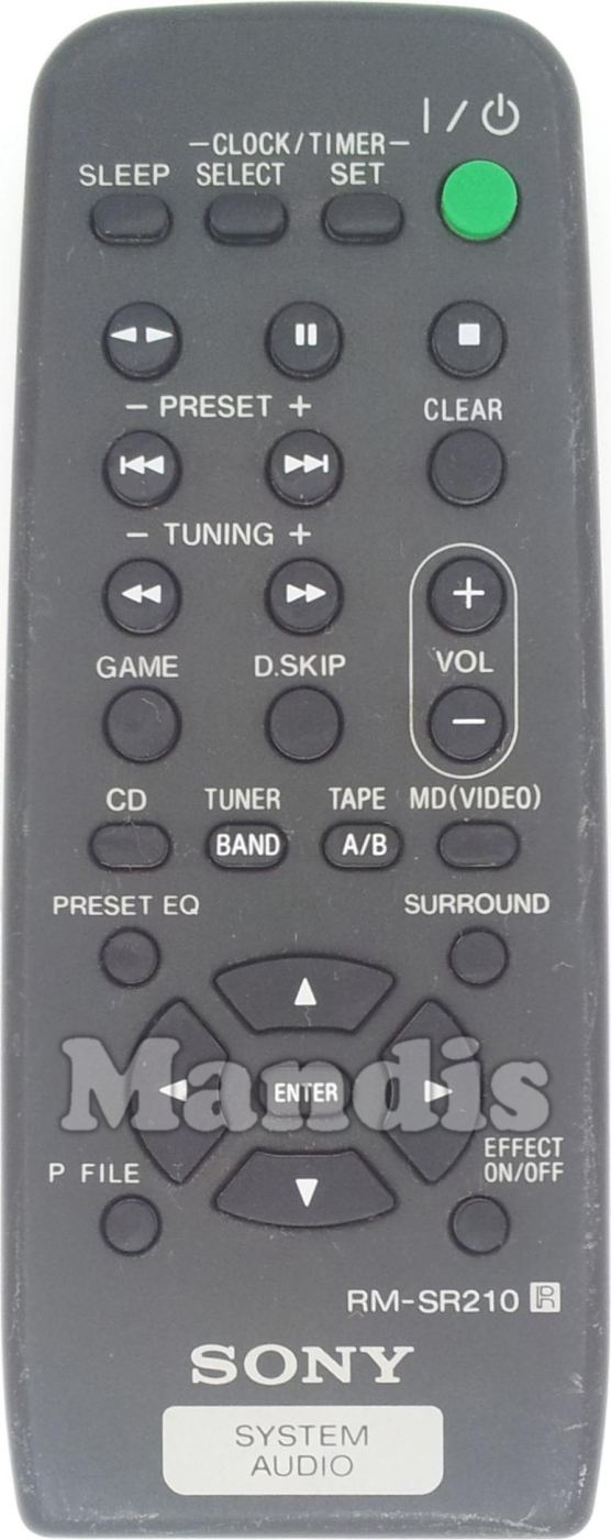 Comando à distância original RM-SR210 (147650311) que serve para sistema hi-fi da marca Sony. Trata-se de um modelo original de comando à distância.