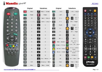Abaixo, mostraremos a correspondência entre cada botão no controle remoto original e o botão que executa a mesma função no controle remoto de substituição. Em alguns casos, pode ser necessário pressionar a tecla SHIFT antes de pressionar outro botão para realizar determinadas ações. Essas funções adicionais geralmente não são amplamente utilizadas e são incluídas para facilitar o entendimento do controle remoto de substituição, ou porque o controle remoto original tem mais botões do que seu equivalente.