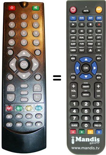 Abaixo, mostraremos a correspondência entre cada botão no controle remoto original e o botão que executa a mesma função no controle remoto de substituição. Em alguns casos, pode ser necessário pressionar a tecla SHIFT antes de pressionar outro botão para realizar determinadas ações. Essas funções adicionais geralmente não são amplamente utilizadas e são incluídas para facilitar o entendimento do controle remoto de substituição, ou porque o controle remoto original tem mais botões do que seu equivalente.