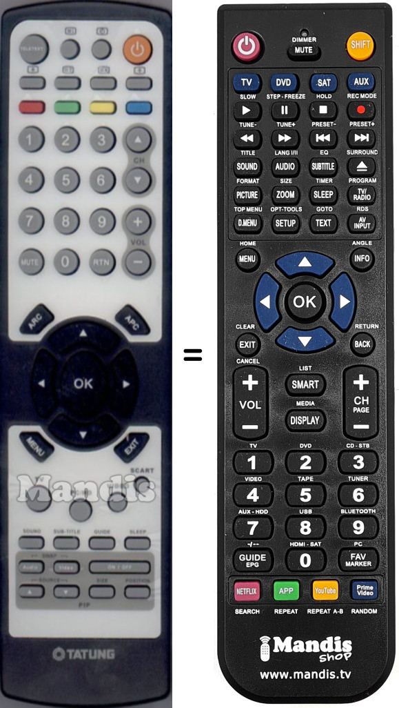 Comando à distância que substitui o original em todas as suas funções.