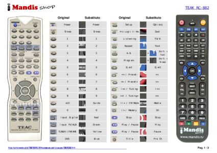 Este comando substitui completamente o seu RC-882 e oferece todas as funções do original.