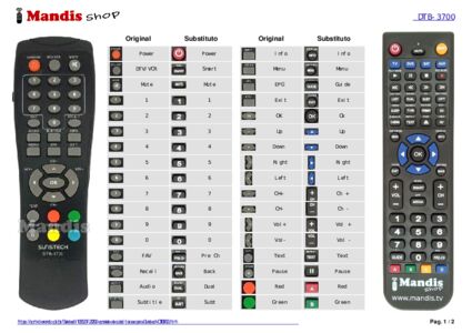 Início > Marcas > Comandos à Distância TELSEY > Controle remoto para TELSEY DTB-3700 > Distribuição interativa de teclas TELSEY DTB-3700