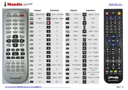 Início > Marcas > Comandos à Distância THES > Controle remoto para THES Remcon1155 > Distribuição interativa de teclas THES Remcon1155