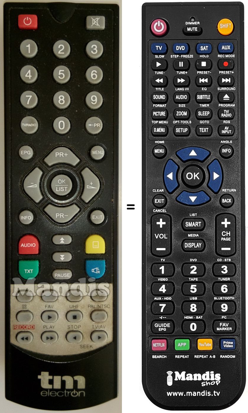 Comando à distância que substitui o original TM-TDT 1019 em todas as suas funções.