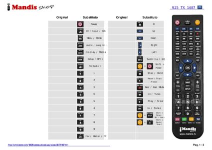 Um documento está incluso para ajudá-lo a usar o novo controle remoto facilmente, mostrando a correspondência dos botões.