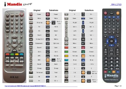Comando à distância que substitui o original RM-L1703 (720117134200) em todas as suas funções.