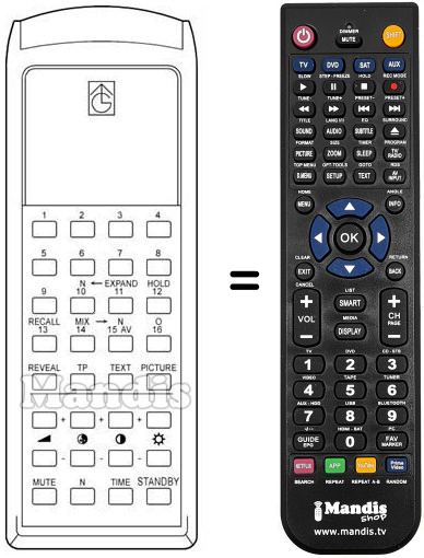 Comando à distância que substitui o original RC 40 em todas as suas funções.