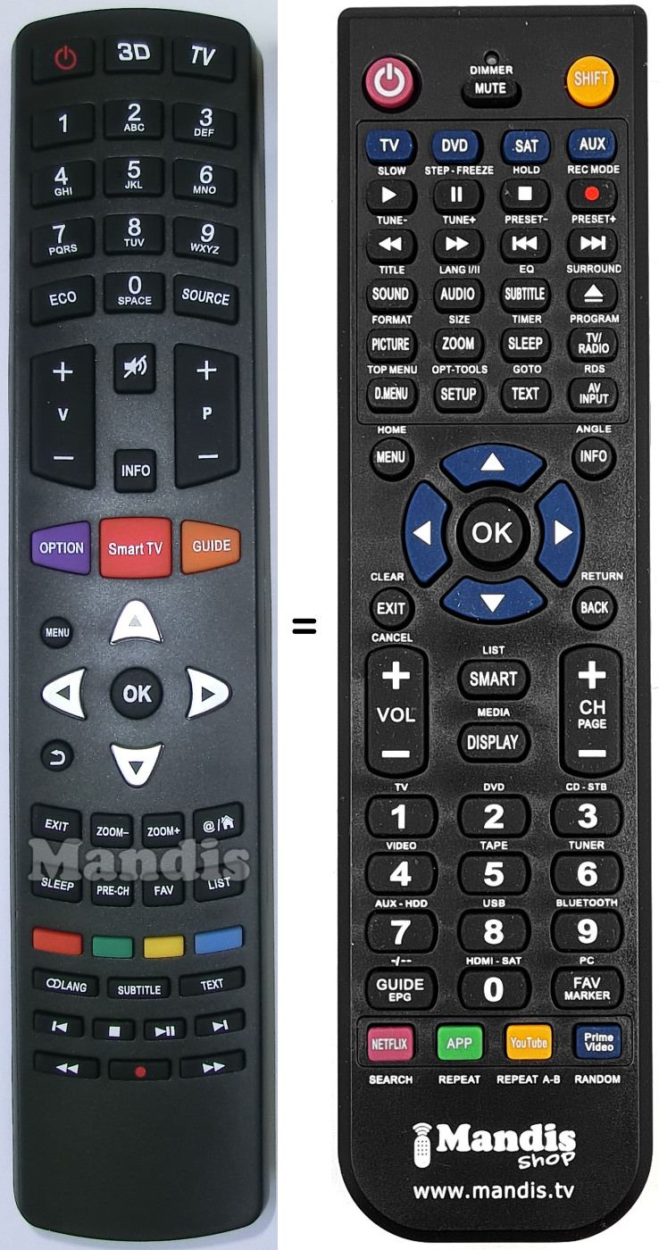 Comando à distância que substitui o original em todas as suas funções.