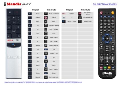 Este comando substitui completamente o seu RC602S (06BTZNYYCRC602S) e oferece todas as funções do original.