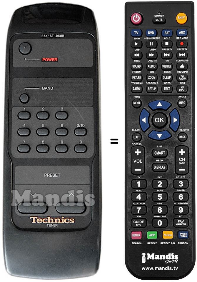Comando à distância que substitui o original RAK-ST106WH em todas as suas funções.