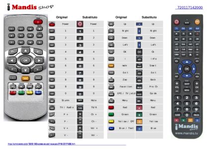 Este controle remoto executa todas as funções do controle remoto original: Power, 1, 2, 3, 4, 5, 6, 7, 8, 9, 0, Stumm, TV / Radio, P +, P -, V +, V -, Up, Right, Down, Left, OK, i, mehr, Exit, Zap, Faviruteb, EPG / TV Jetzt, Menu, Red, Green, Yellow / OPT, Blue / Text