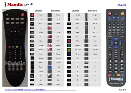 Comando à distância que substitui o original RC 1101 (30058733) em todas as suas funções.
