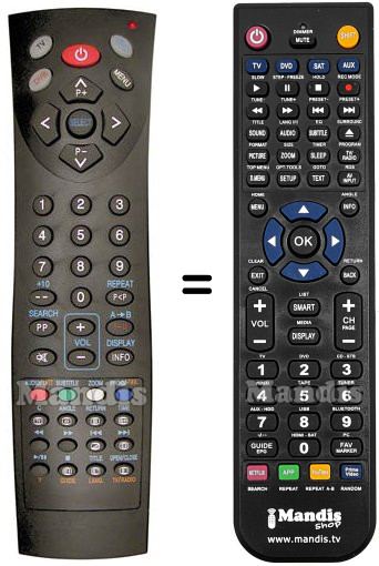 Abaixo, mostraremos a correspondência entre cada botão no controle remoto original e o botão que executa a mesma função no controle remoto de substituição. Em alguns casos, pode ser necessário pressionar a tecla SHIFT antes de pressionar outro botão para realizar determinadas ações. Essas funções adicionais geralmente não são amplamente utilizadas e são incluídas para facilitar o entendimento do controle remoto de substituição, ou porque o controle remoto original tem mais botões do que seu equivalente.