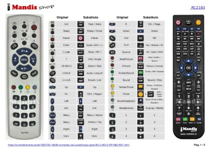 Este comando substitui completamente o seu RC 2183 (313P10821831) e oferece todas as funções do original.