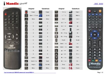 Comando à distância que substitui o original DVD 200 em todas as suas funções.
