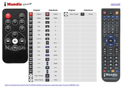 Comando à distância que substitui o original SB255BT em todas as suas funções.