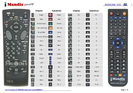 Este controle remoto executa todas as funções do controle remoto original: Power, VCR, TV, Red / A, Green / B / Cass., Yellow / C / Prog., Blue / D / Mem., Purple / E / Status, Exit, Menu, Up, Left, OK, Right, Down, Vol+, Vol-, Mute, PR-, PR+, 1, 2, 3, 4, 5, 6, 7, 8, 9, 0 / --, AV, Index Mark, 0000, SP/LP, Rew, Play, F.Fwd, Rec, Stop, Pause