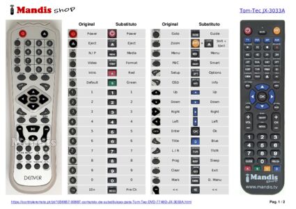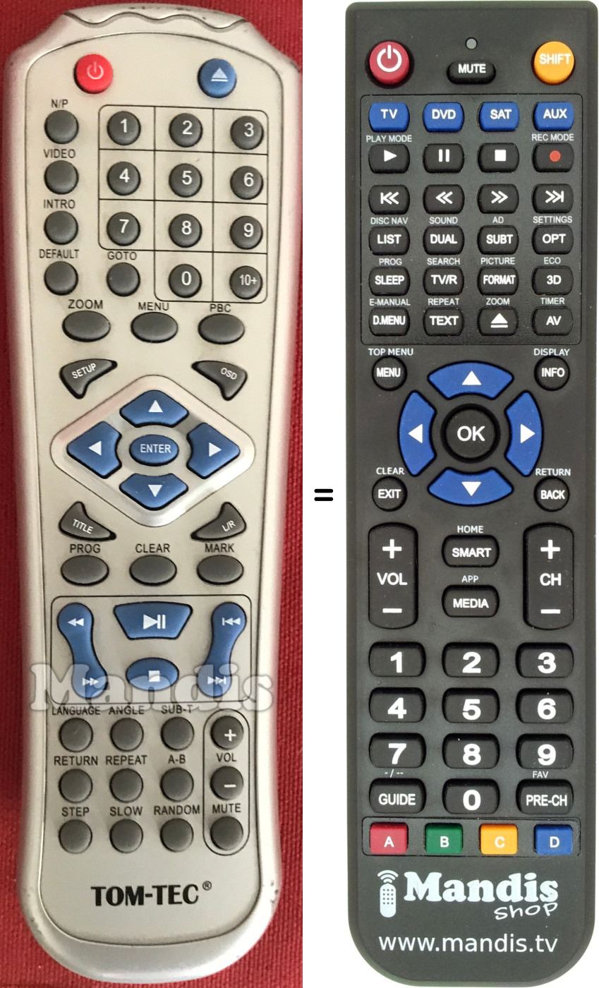 Início > Marcas > Comandos à Distância Tom-Tec > Controle remoto para TOM-TEC DVD3602