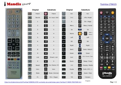 Um documento está incluso para ajudá-lo a usar o novo controle remoto facilmente, mostrando a correspondência dos botões.