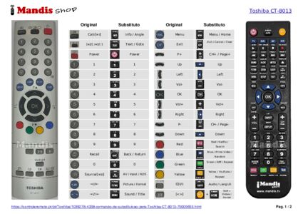 Um documento está incluso para ajudá-lo a usar o novo controle remoto facilmente, mostrando a correspondência dos botões.