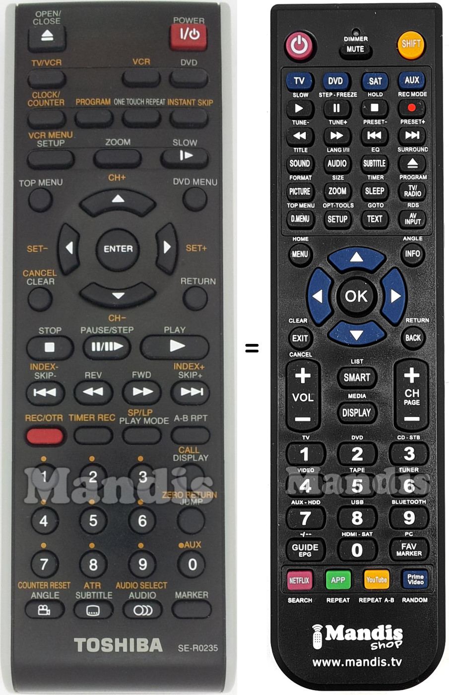 Abaixo, mostraremos a correspondência entre cada botão no controle remoto original e o botão que executa a mesma função no controle remoto de substituição. Em alguns casos, pode ser necessário pressionar a tecla SHIFT antes de pressionar outro botão para realizar determinadas ações. Essas funções adicionais geralmente não são amplamente utilizadas e são incluídas para facilitar o entendimento do controle remoto de substituição, ou porque o controle remoto original tem mais botões do que seu equivalente.