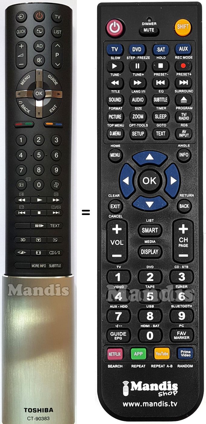 Início > Marcas > Comandos à Distância Toshiba > Controle remoto para Toshiba CT90383