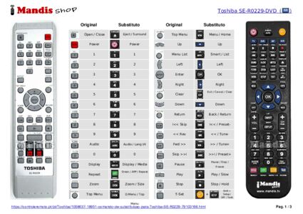 Um documento está incluso para ajudá-lo a usar o novo controle remoto facilmente, mostrando a correspondência dos botões.