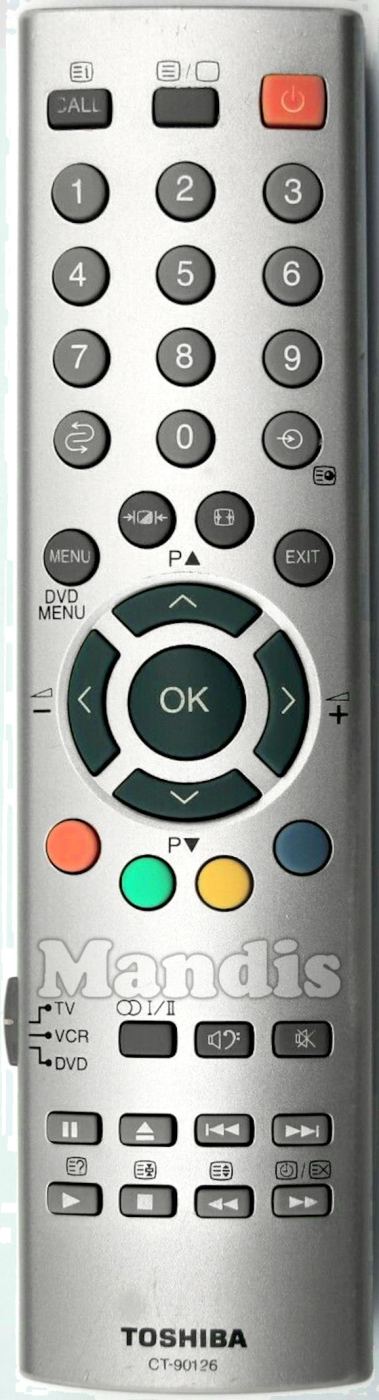 Comando à distância original CT-90126 da marca Toshiba. Trata-se de um modelo original de comando à distância.