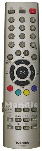 Comando à distância original CT-90100 da marca Toshiba. Trata-se de um modelo original de comando à distância.