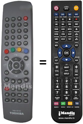 Comando à distância que substitui o original TWD50140 (TW50140) em todas as suas funções.