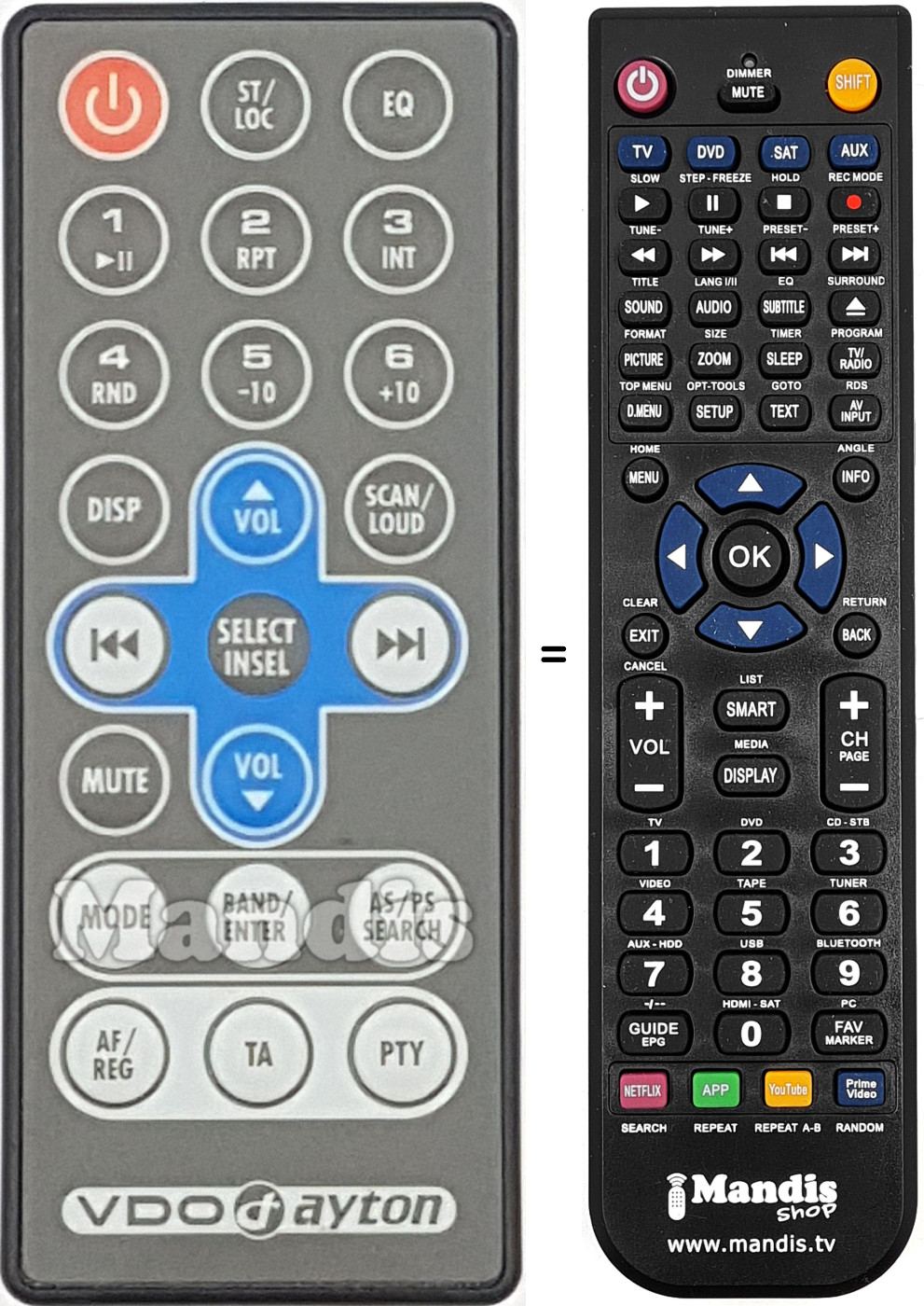 Comando à distância que substitui o original em todas as suas funções.