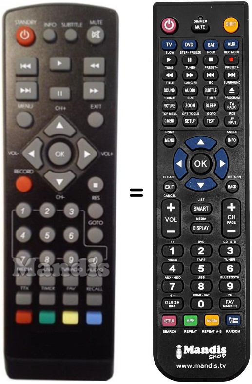 Comando à distância que substitui o original em todas as suas funções.